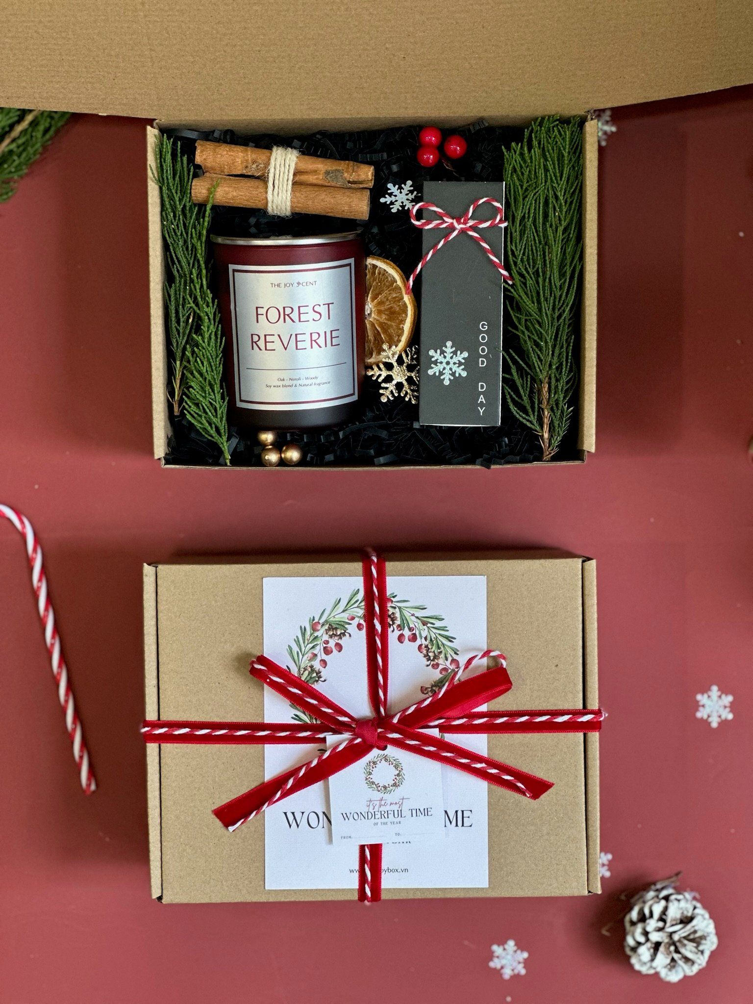 Giữa những ngày cuối năm se lạnh, không gì dễ thương hơn một ngọn nến đỏ ấm, chút hương thông – quế và một lời chúc bình yên. A Cozy Xmas là set quà mini nhưng đủ đầy – dành tặng sự ấm áp và tinh tế đến những người bạn muốn quan tâm dịu dàng nhất.