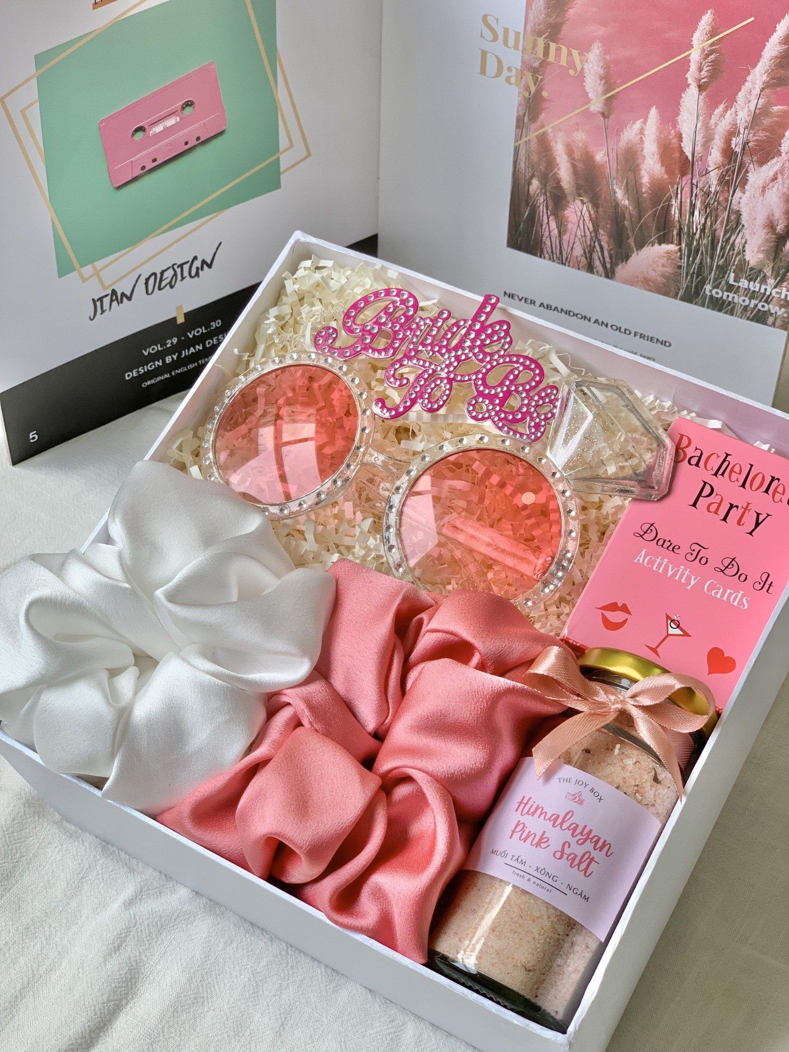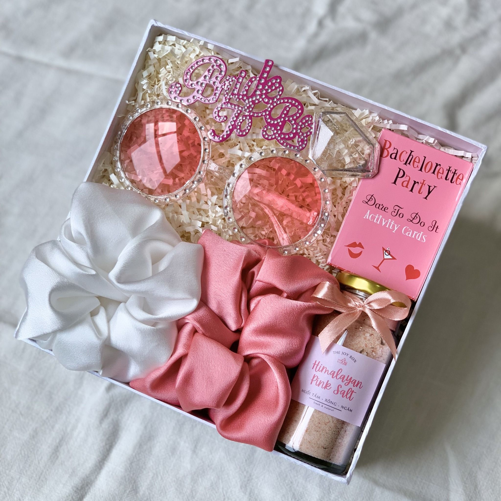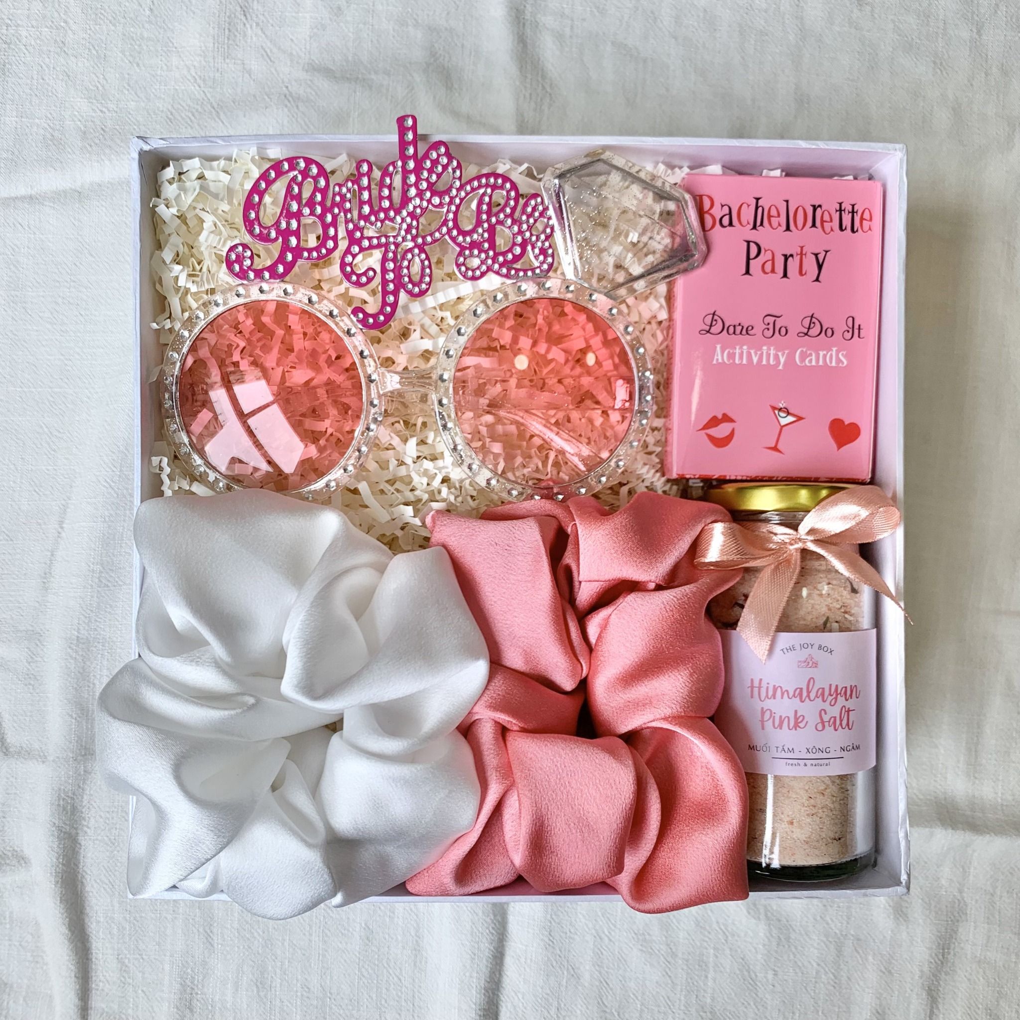 Hộp quà tặng dành cho cô dâu, phụ dâu xinh đẹp trong ngày Bachelorette party (tiệc độc thân của cô dâu trước ngày cưới). Hộp quà không thiếu những món phụ kiện chụp ảnh, chơi game cực nhộn mà còn có những món quà làm đẹp, chăm sóc cơ thể các nàng trước ngày vui.