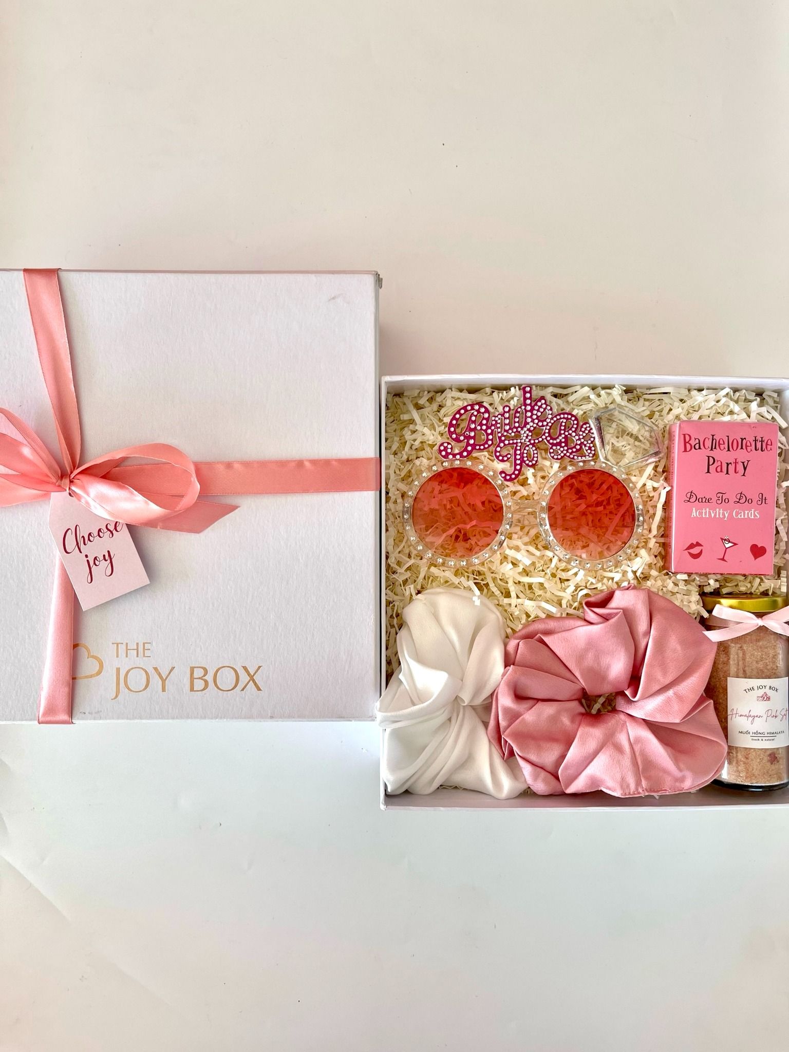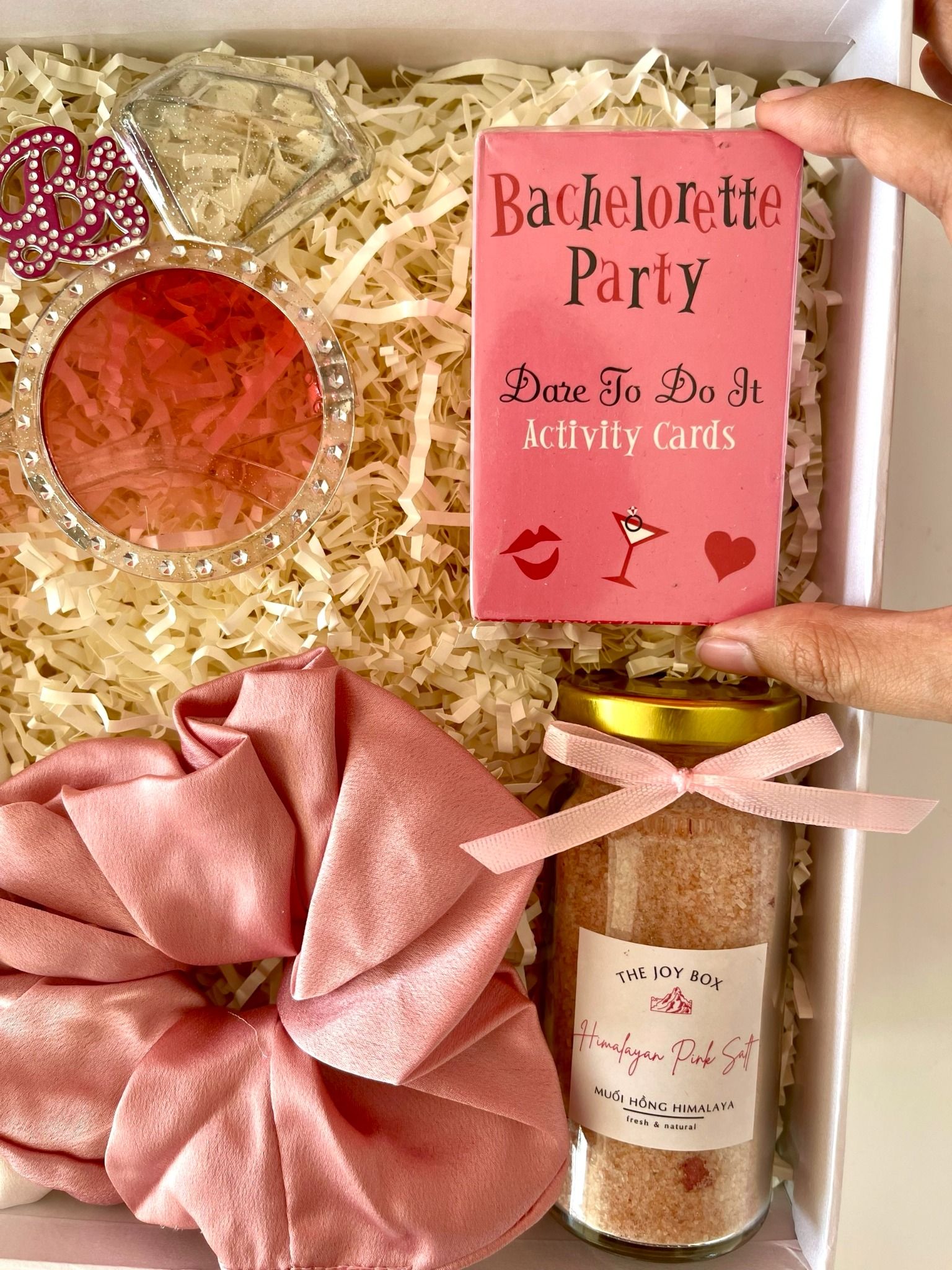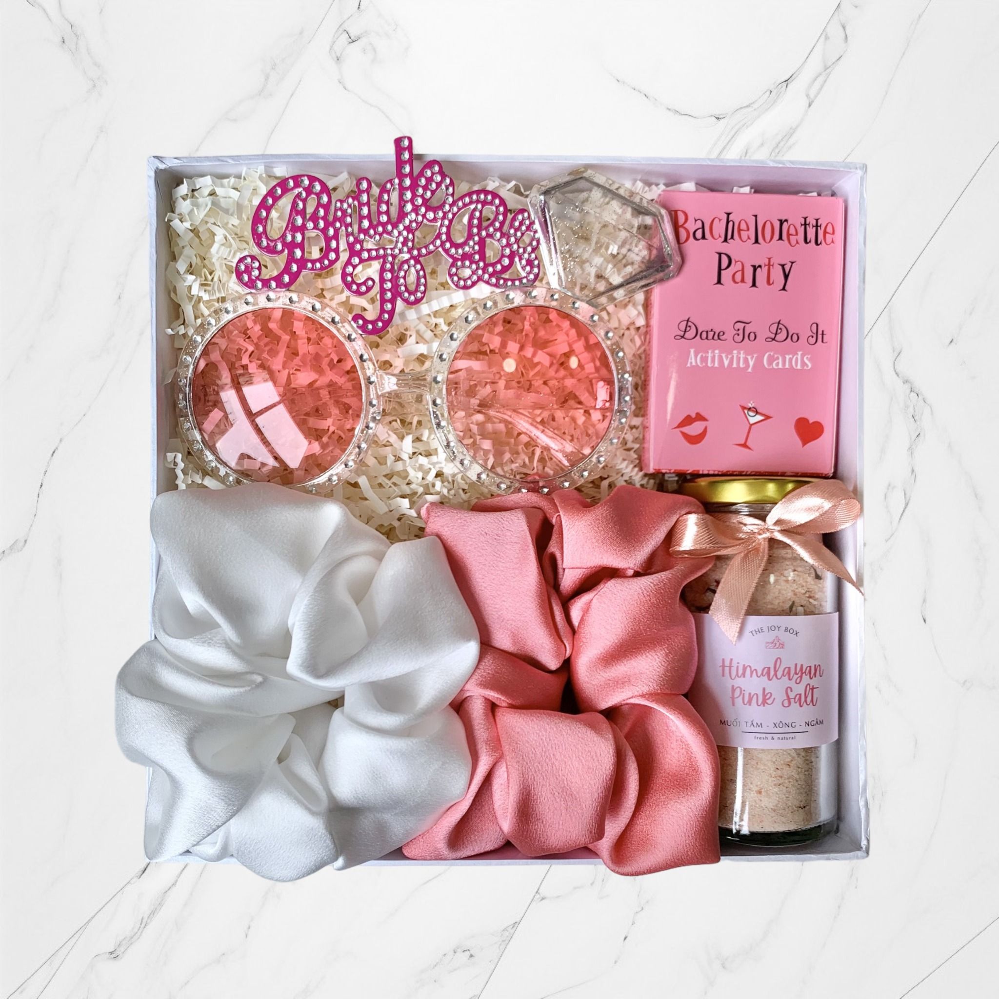 Hộp quà tặng dành cho cô dâu, phụ dâu xinh đẹp trong ngày Bachelorette party (tiệc độc thân của cô dâu trước ngày cưới). Hộp quà không thiếu những món phụ kiện chụp ảnh, chơi game cực nhộn mà còn có những món quà làm đẹp, chăm sóc cơ thể các nàng trước ngày vui.