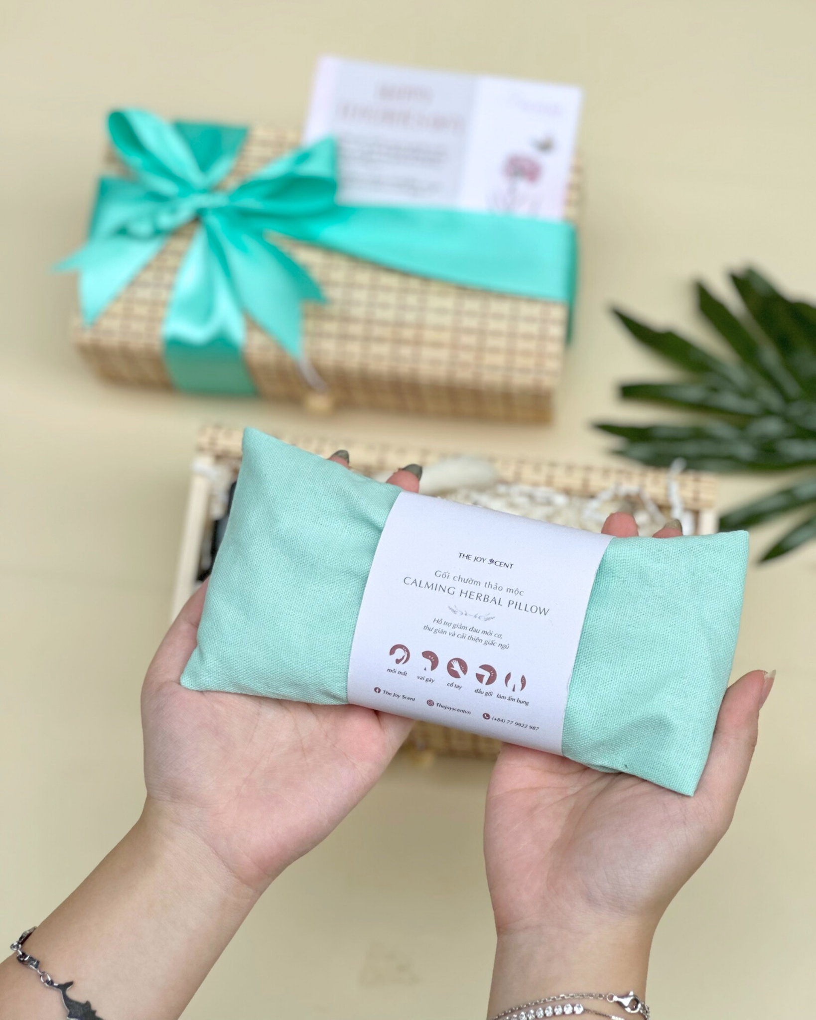 💚 Gối chườm thảo mộc xanh lá – chiết xuất từ thảo mộc thiên nhiên, giúp giảm đau mỏi và mang lại giấc ngủ sâu.