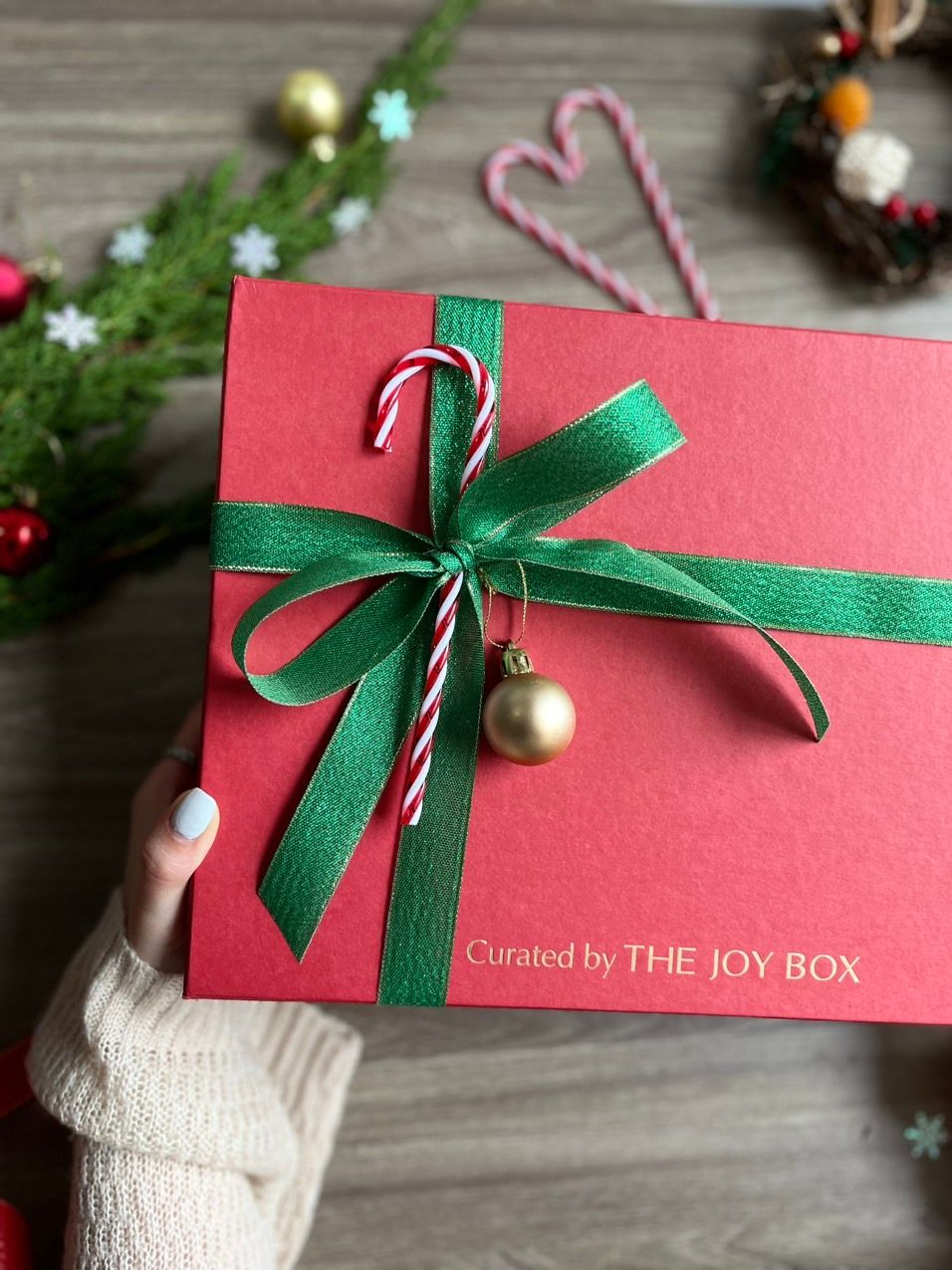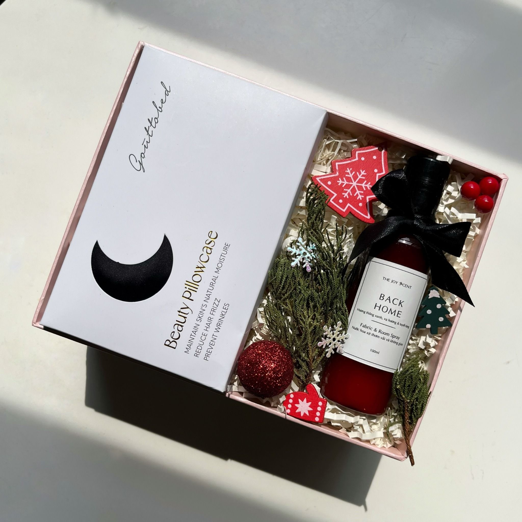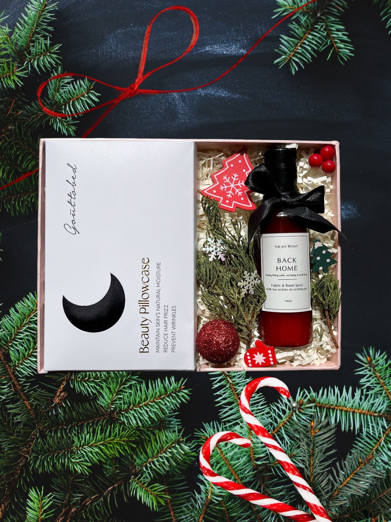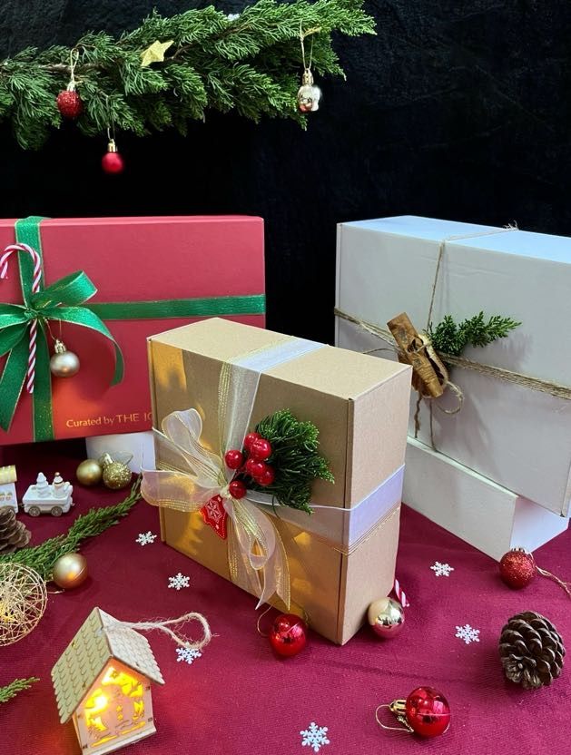 - Hộp quà được gói trong hộp ép kim cao cấp, trang trí phụ kiện Giáng Sinh & thắt nơ xinh xắn