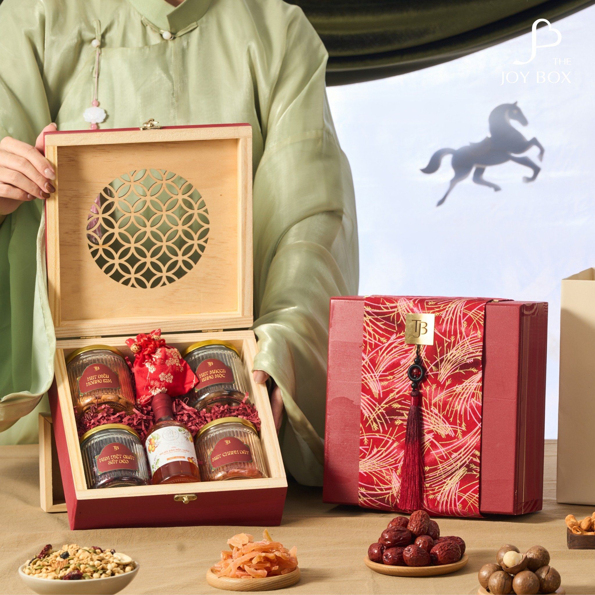 Lấy cảm hứng từ sắc hồng rực rỡ của mùa xuân và hoa mai khoe sắc, Hồng Xuân Minh Hoa là biểu tượng của tài lộc và thịnh vượng. Thiết kế hộp gỗ kết hợp dải gấm đỏ thêu hoa cùng chi tiết kim loại ánh vàng gợi nên vẻ đẹp thanh lịch và quyền quý, món quà hoàn hảo để mở đầu năm mới viên mãn.