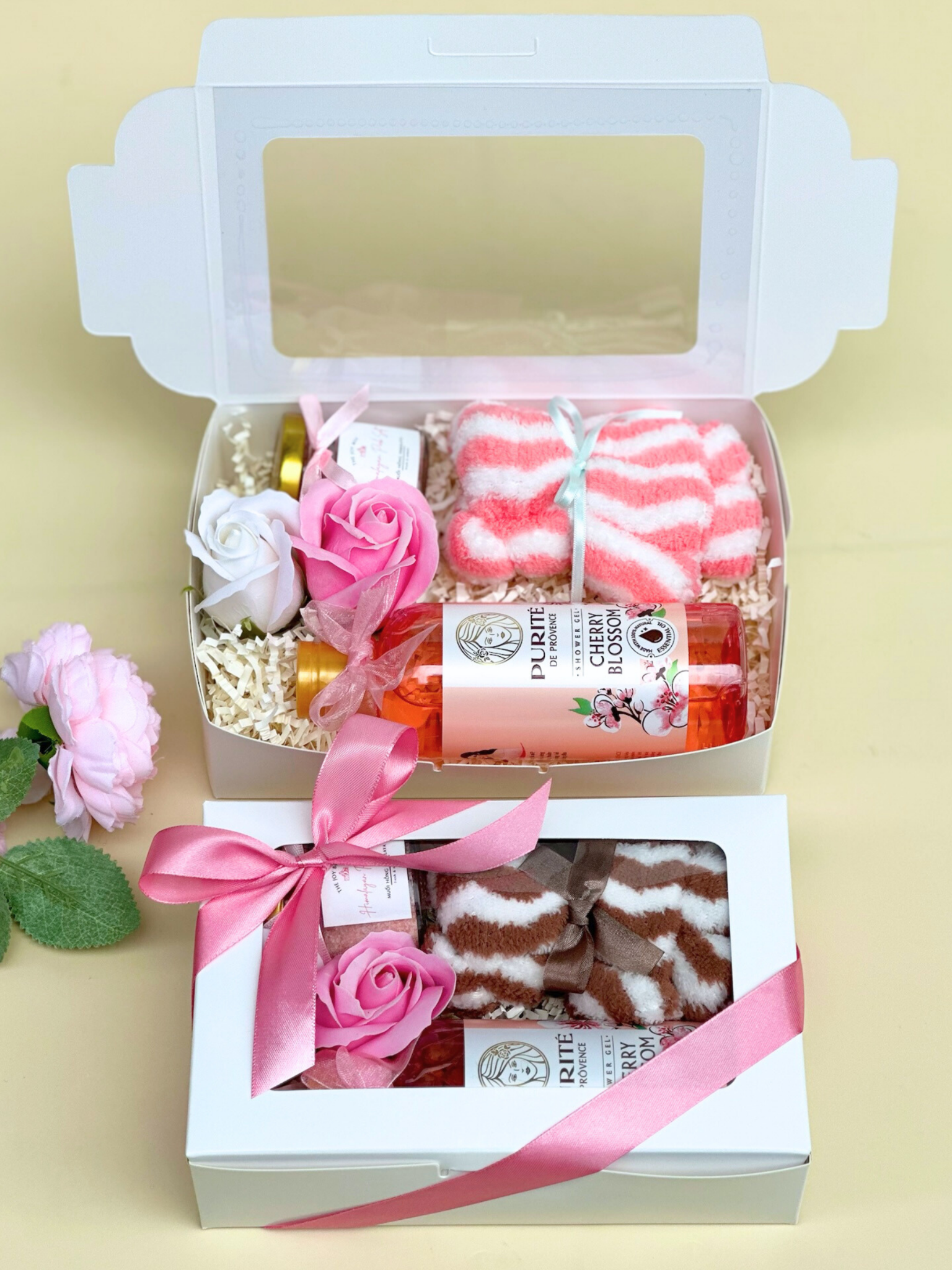 Tất cả được gói ghém trong hộp giấy mặt kính phối ruy băng – đóng gói sang trọng, sẵn sàng trao tặng trực tiếp.