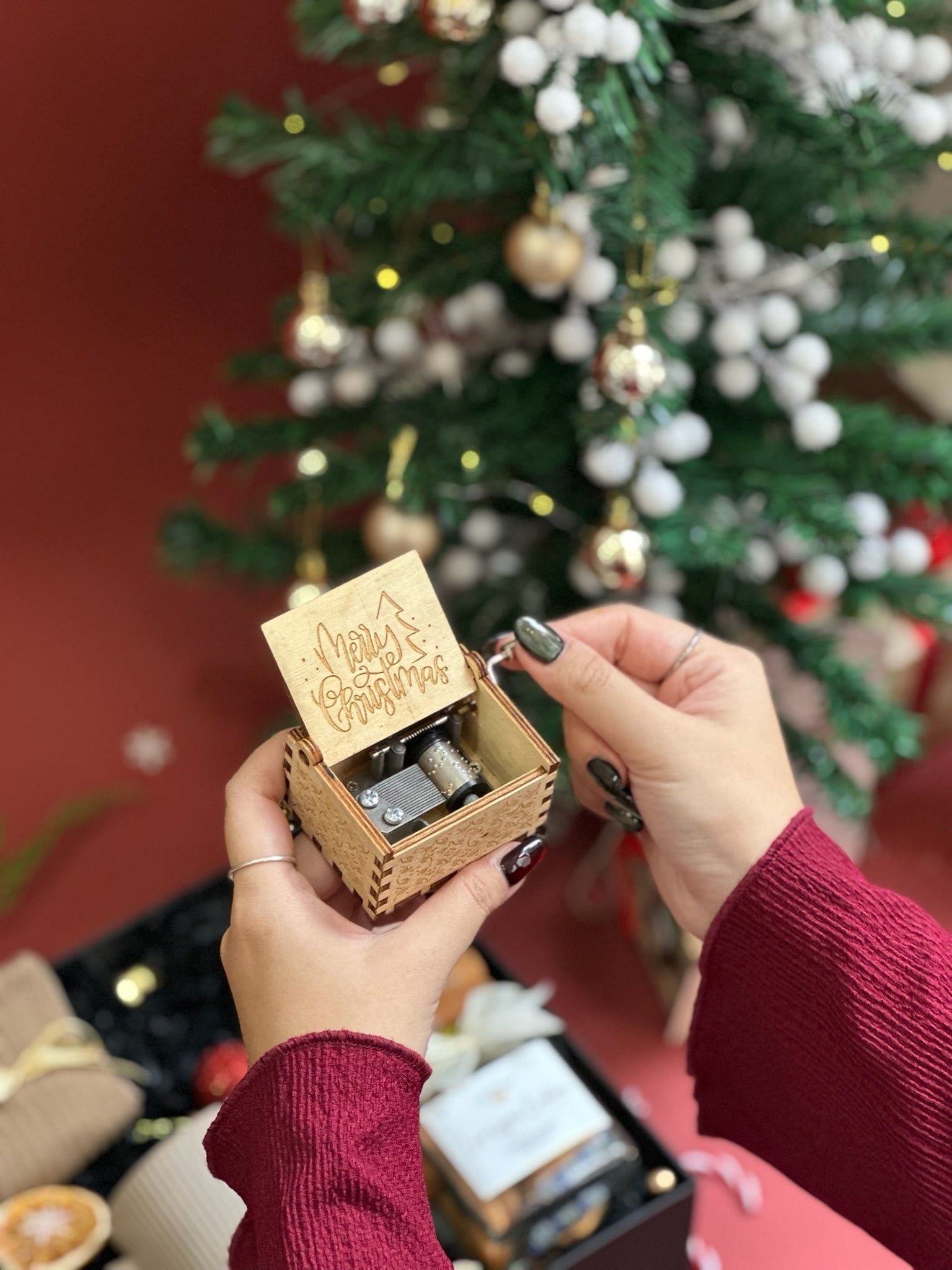 - 1 hộp nhạc gỗ nhỏ xinh với giai điệu Merry Christmas vui tai