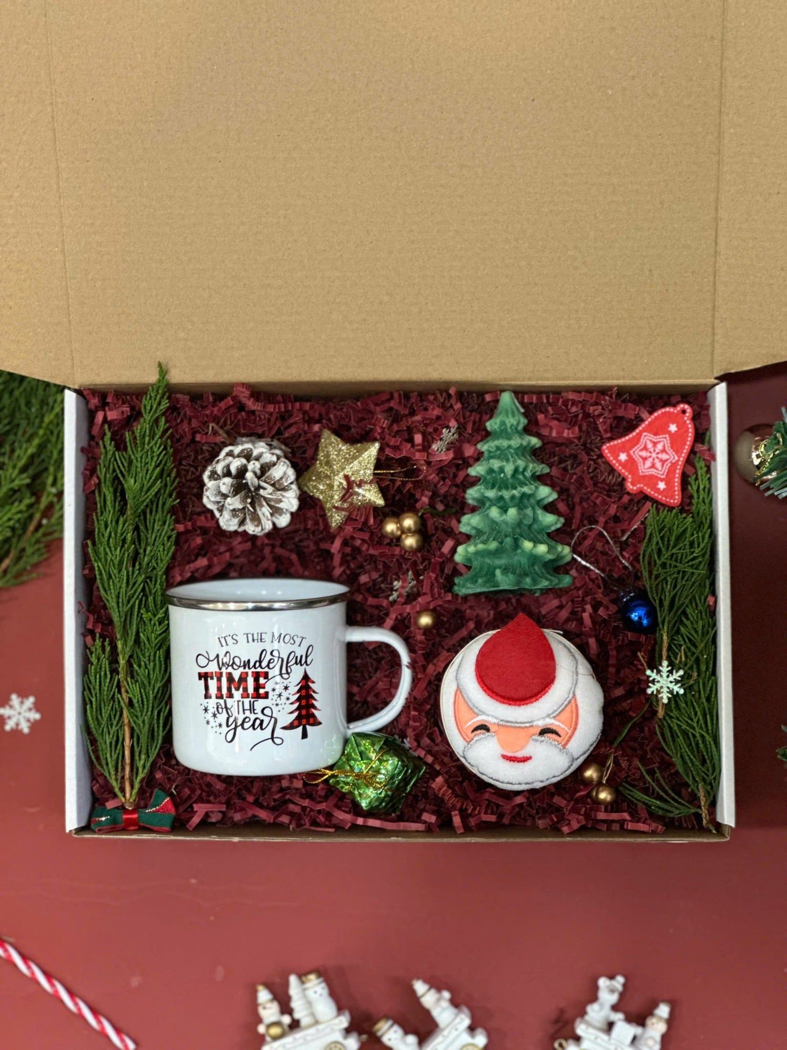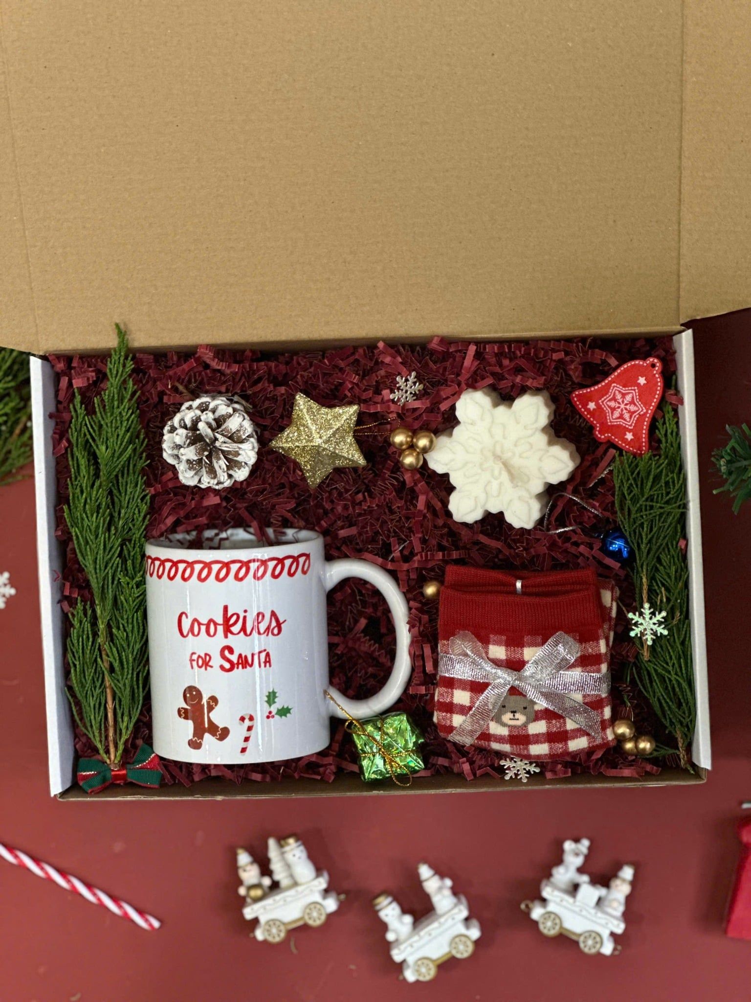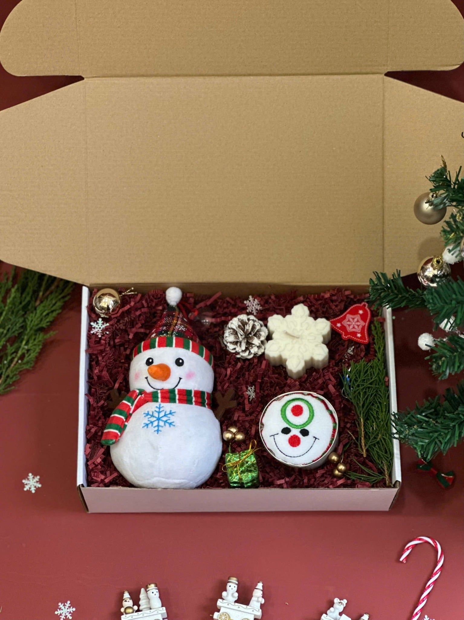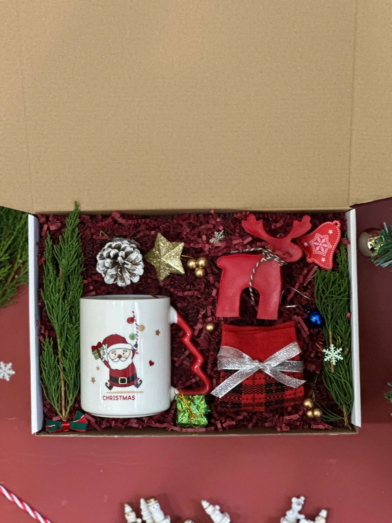 🎁 Hộp giấy kraft kèm thiệp + phụ kiện trang trí Xmas: chỉn chu, tạo trải nghiệm “mở hộp” đúng vibe mùa lễ hội.