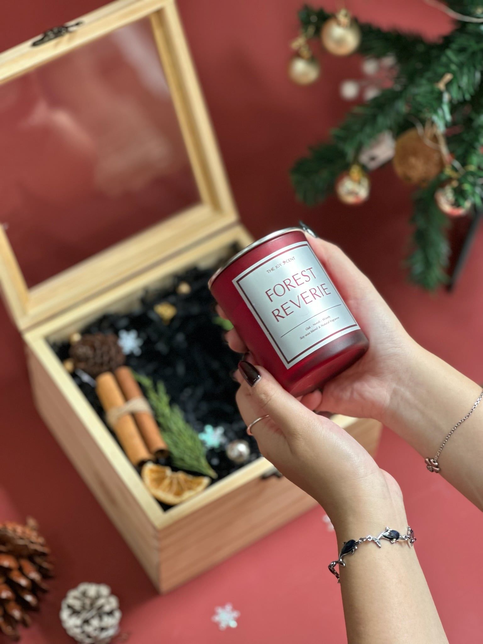 Được truyền cảm hứng từ sắc đỏ – xanh đặc trưng của mùa lễ hội, Snowy Wish 01 là hộp quà mang đến cảm giác ấm cúng từ ánh nến, mùi thơm tự nhiên và sự chỉn chu trong từng chi tiết. Món quà hoàn hảo để gửi gắm yêu thương, thay bạn trao đi lời chúc mùa lễ hội đầy chân thành.